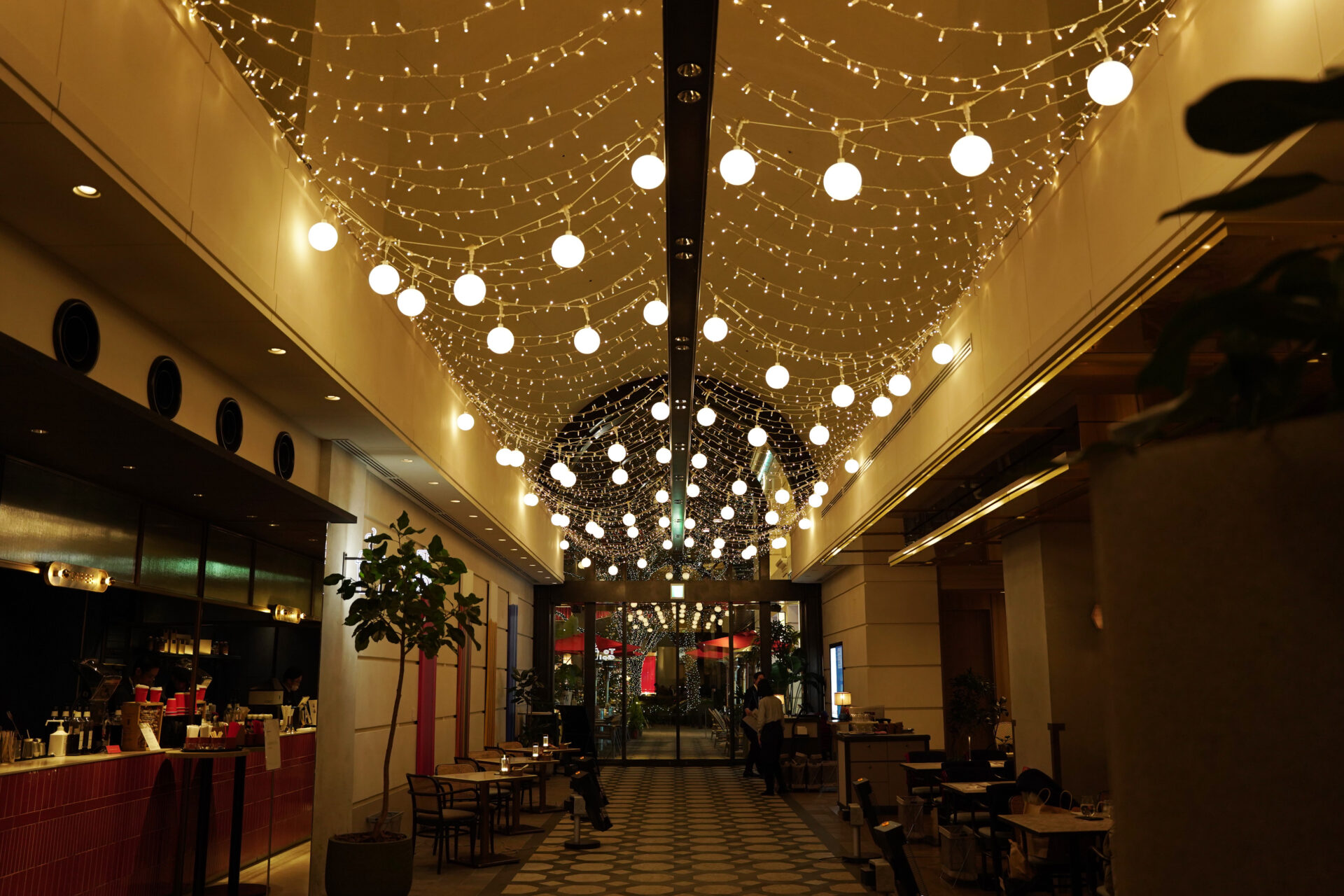 2024年には屋内のカフェエリアにもイルミネーションを追加しました。その美しさと心地よさから、当初は期間限定の予定だったものが、好評を受けて常設装飾として残ることとなりました。日常の中にふと訪れる、特別な時間をそっと演出しています。